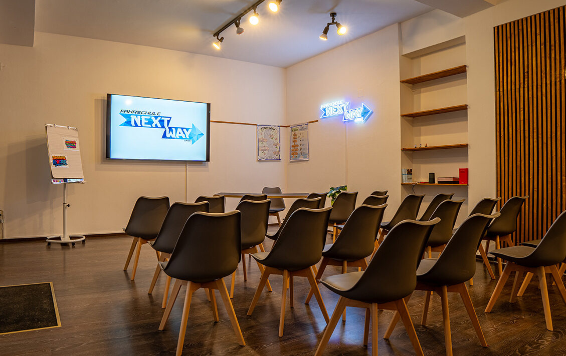 Deinen Unterricht erlebst du in toll ausgestatten Räumlichkeiten, mit multimedialer Großbildpräsentation. Wir sorgen für eine angenehme Unterrichtsatmosphäre mit viel Spaß und Abwechslung – damit lernt es sich einfach leichter. Mach dir doch selbst ein Bild und komm vorbei. Du kannst jederzeit und kostenfrei einen Probeunterricht besuchen. Danach entscheidest du, ob wir für deine Ausbildung der richtige Partner sind.